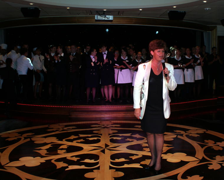 Cruise Director Dottie Kulasa introduces