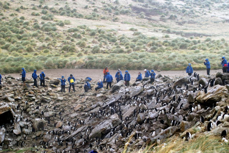 view colonies of rockhopper penguins, black-browed albatrosses and
