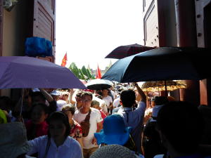 Kaew complex was very crowded on Sunday. Our guide, Joe, holds