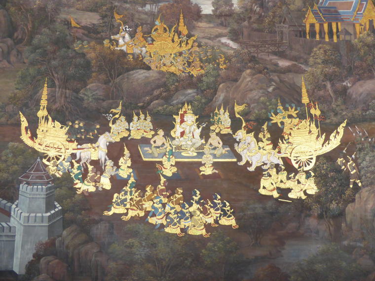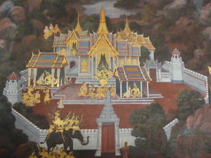 lavishly painted murals depicting the ancient legend of the