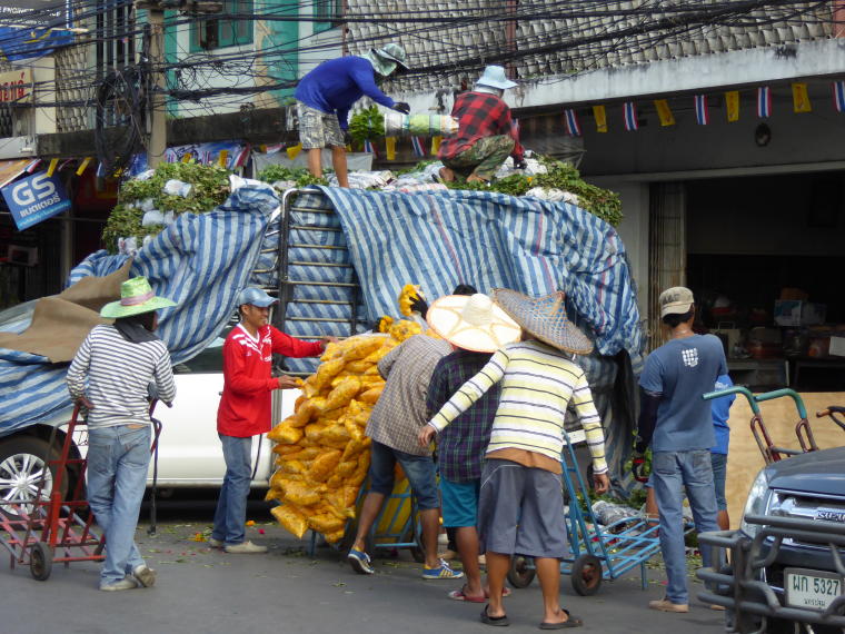 Unloading fresh produce for the market