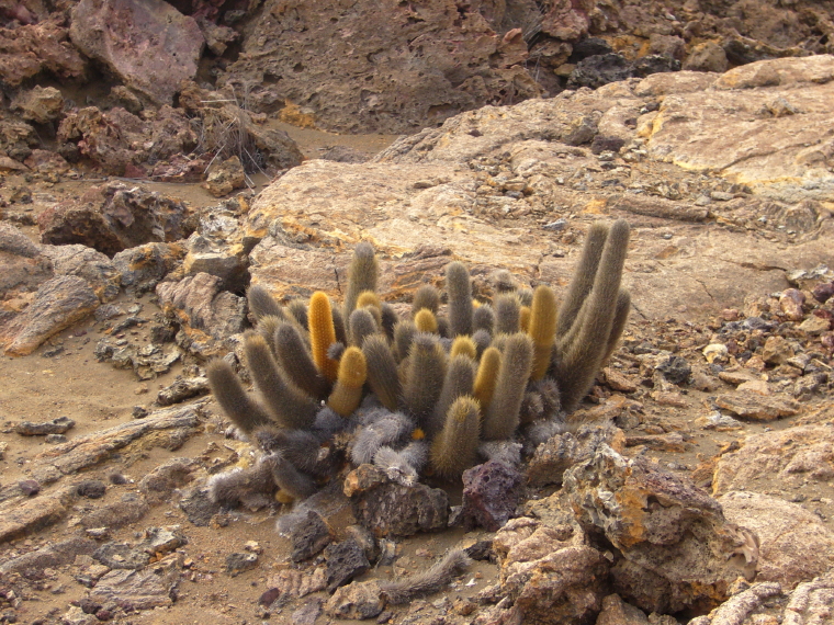 cactus and the tiquilia shrub which are food for the lava lizards.