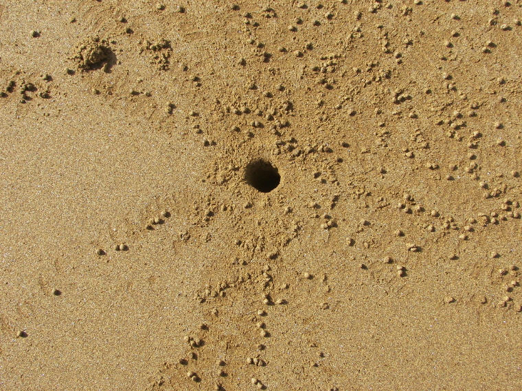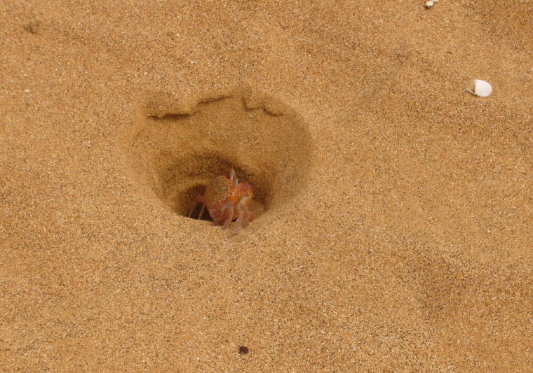 where ghost crabs were scurrying about and disappearing into their