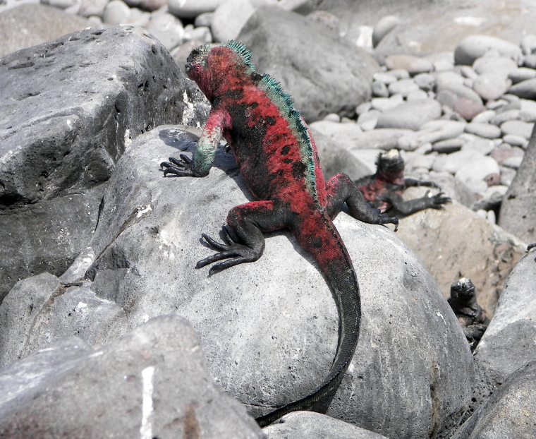 them up. The marine iguanas here are more colorful than on other