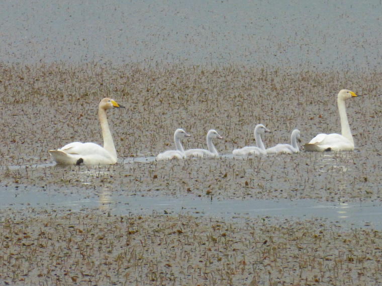 Family of Whooper Swans on a lake