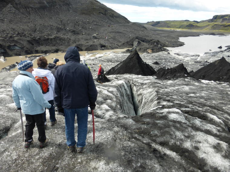 Our guide points out a moulin or glacier