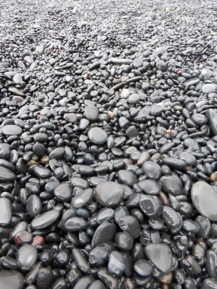 Smooth black stones on beach