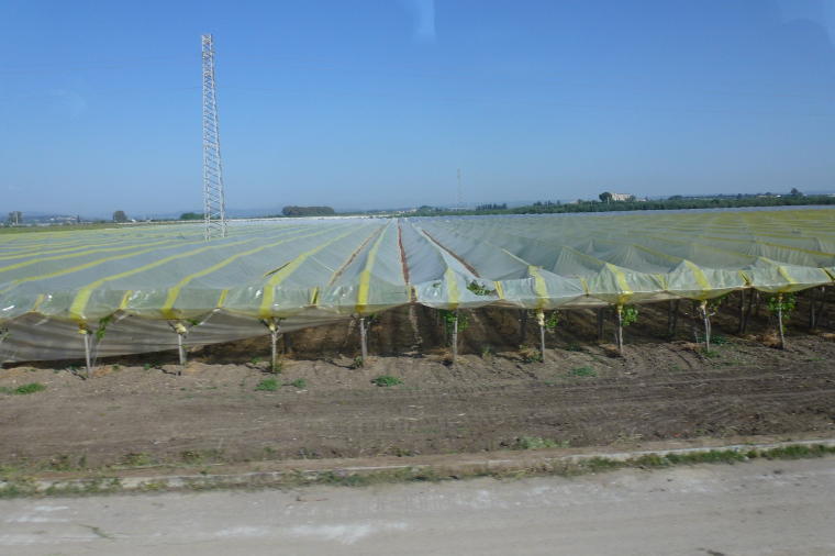 in this region were covered with plastic tarps to protect them from