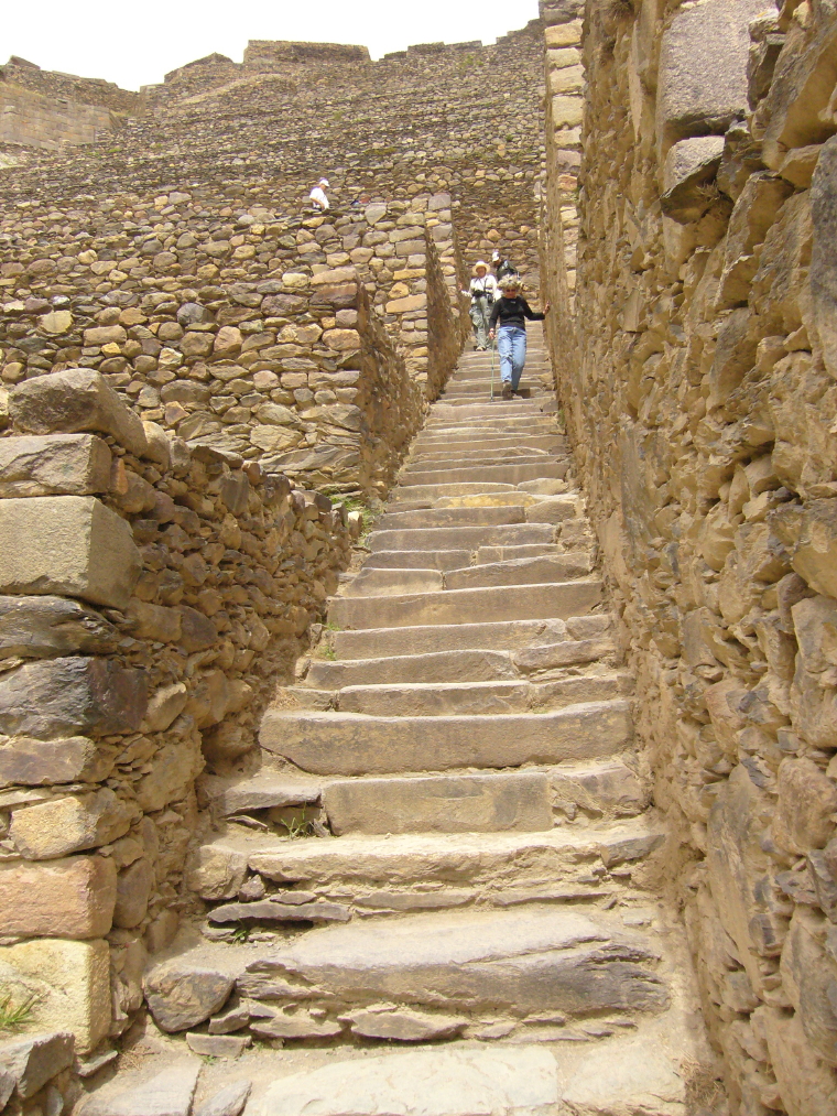 of the great stone terraces of the Inca ruins. The ruins are on